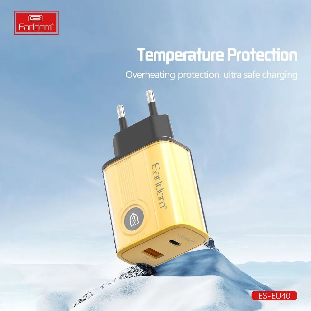 Network charger Earldom EU40 (30W) — Type-C + USB, yellow